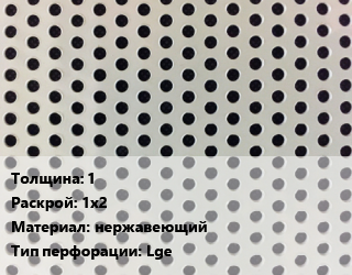 Лист перфорированный 1 1х2 нержавеющий Lge, шт, прямоугольная, по запросу цена от 9 653 Р / шт, где купить, условия доставки в Бресте и Брестской области