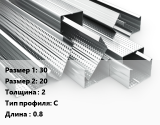 Гнутый профиль 30х20 s=2 С L=0.8, шт, С-образный, траверса монтажная цена от 325.68 Р / шт, где купить, условия доставки в Бресте и Брестской области