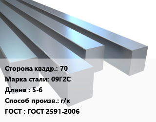 Квадрат стальной 70 Сталь: 09Г2С L=5-6 г/к ГОСТ 2591-2006