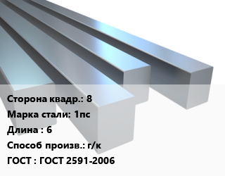 Квадрат стальной 8 Сталь: 1пс L=6 г/к ГОСТ 2591-2006