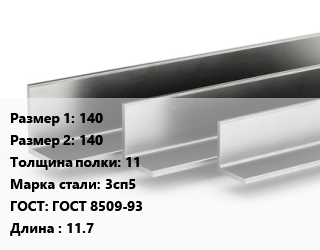 Уголок горячекатаный 140х140х11 Сталь: 3сп5 ГОСТ: ГОСТ 8509-93 L=11.7