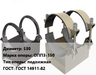 Опора трубопровода 530 ОПП3-150 подвижная ГОСТ: ГОСТ 14911-82, приварная, стальные, шт цена от 2 025 Р / шт, где купить, условия доставки в Бресте и Брестской области