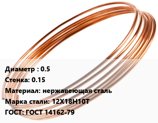 Труба капиллярная 0.5 s=0.15 нержавеющая сталь Сталь: 12Х18Н10Т ГОСТ: ГОСТ 14162-79