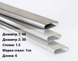 Труба плоскоовальная 60х30 s=1.5 Сталь: 1сп L=6