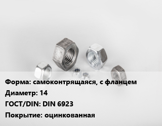 Гайка самоконтрящаяся, с фланцем D=14 DIN 6923 оцинкованная