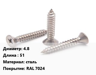 Саморез 4.8 L=51 сталь RAL 7024, упаковка 1000 шт, для кровельных материалов цена от 1 928 Р / кг, где купить, условия доставки в Бресте и Брестской области