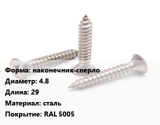 Саморез наконечник-сверло D=4.8 L=29 сталь RAL 5005, упаковка 1000 шт цена от 1 881 Р / кг, где купить, условия доставки в Бресте и Брестской области