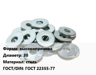 Шайба высокопрочная D=30 сталь ГОСТ: ГОСТ 22355-77