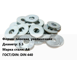 Шайба плоская, увеличенная D=5.5 Сталь: А4 ГОСТ: DIN 440, шт цена от 26.61 Р / кг, где купить, условия доставки в Бресте и Брестской области