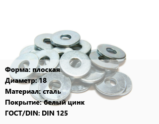 Шайба плоская D=18 сталь белый цинк ГОСТ: DIN 125