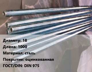 Шпилька стальная 18 L=1000 сталь оцинкованная ГОСТ: DIN 975