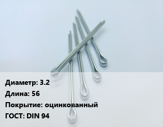 Шплинт 3.2 L=56 оцинкованный ГОСТ: DIN 94