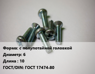 Винт с полупотайной головкой 6х10 ГОСТ 17474-80