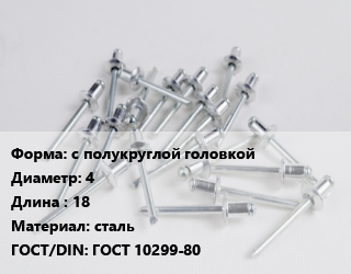 Заклепка с полукруглой головкой 4х18 сталь ГОСТ: ГОСТ 10299-80