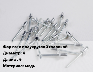 Заклепка с полукруглой головкой 4х6 медь, упаковка 100 шт цена от 165.17 Р / шт, где купить, условия доставки в Бресте и Брестской области