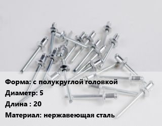 Заклепка с полукруглой головкой 5х20 нержавеющая сталь, шт цена от 74.23 Р / шт, где купить, условия доставки в Бресте и Брестской области