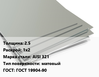 Лист нержавеющий 2.5 1х2 Сталь: AISI 321 Тип:матовый ГОСТ 19904-90