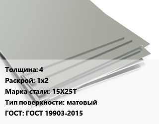 Лист нержавеющий 4 1х2 Сталь: 15Х25Т Тип:матовый ГОСТ 19903-2015