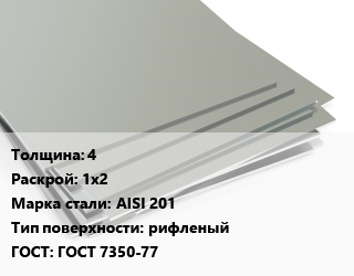 Лист нержавеющий 4 1х2 Сталь: AISI 201 Тип:рифленый ГОСТ 7350-77