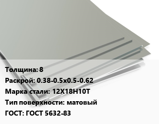 Лист нержавеющий 8 0.38-0.5х0.5-0.62 Сталь: 12Х18Н10Т Тип:матовый ГОСТ 5632-83