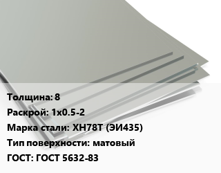 Лист нержавеющий 8 1х0.5-2 Сталь: ХН78Т (ЭИ435) Тип:матовый ГОСТ 5632-83