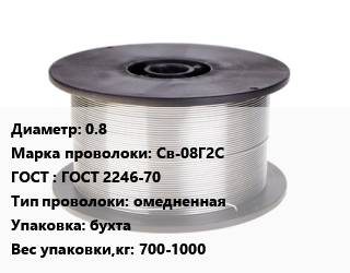 Проволока сварочная 0.8 Сталь: Св-08Г2С ГОСТ: ГОСТ 2246-70 омедненная бухта 700-1000