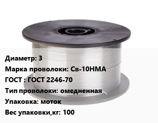 Проволока сварочная 3 Сталь: Св-10НМА ГОСТ: ГОСТ 2246-70 омедненная моток 100