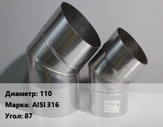 Отвод дымохода 110 Марка: AISI 316 Угол:87, шт цена от 1 305 Р / шт, где купить, условия доставки в Бресте и Брестской области
