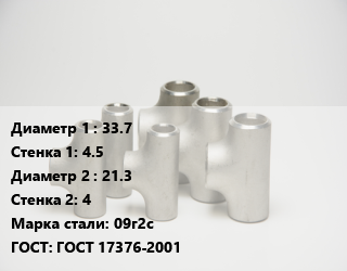 Тройник стальной 33.7х4.5 -21.3х4 Сталь: 09г2с ГОСТ: ГОСТ 17376-2001