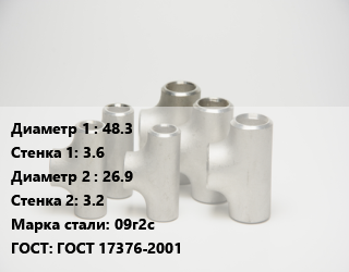 Тройник стальной 48.3х3.6 -26.9х3.2 Сталь: 09г2с ГОСТ: ГОСТ 17376-2001