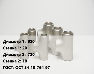 Тройник стальной 920х20 -720х18 ГОСТ: ОСТ 34-10-764-97